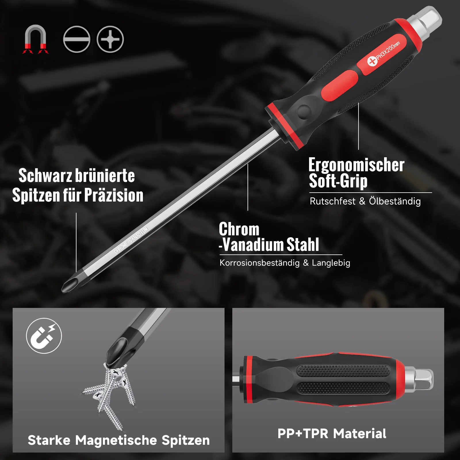 Von kompakten Kurzschraubendrehern bis zu langen, kraftvollen Varianten deckt das Set ein breites Anwendungsspektrum ab. Der stabile Hartschalenkoffer gewährleistet Ordnung und einfache Mitnahme.