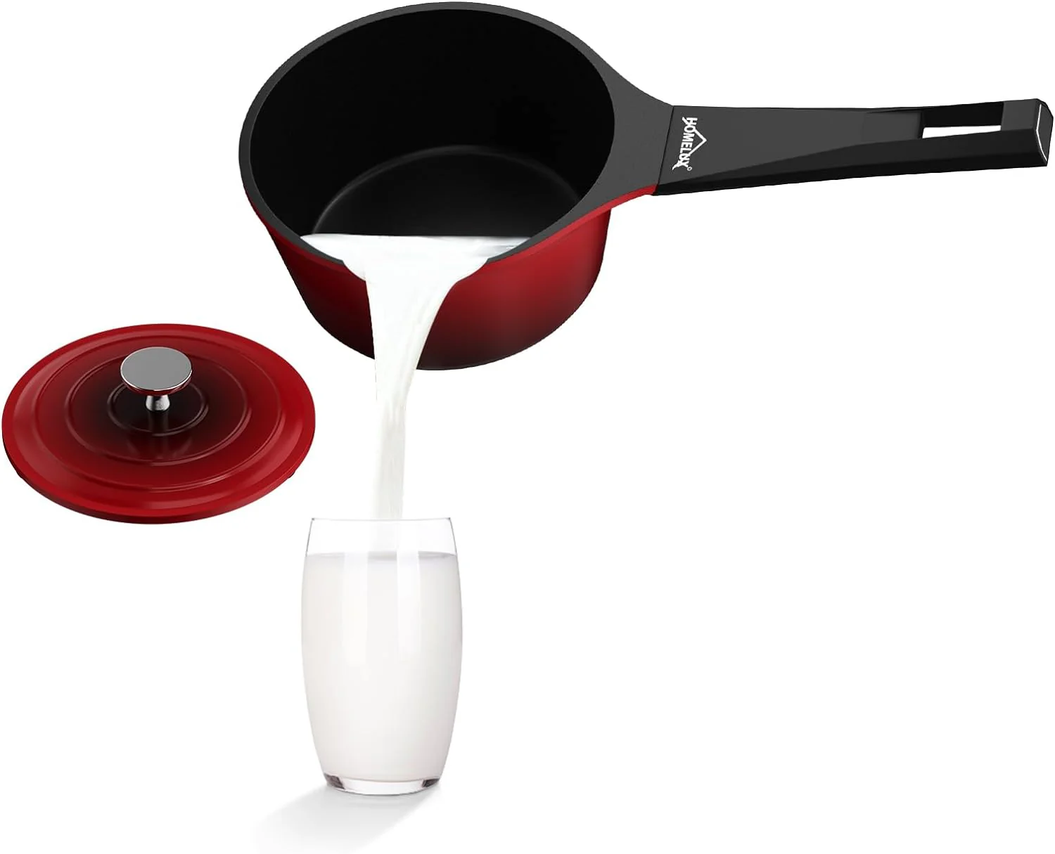 HOMELUX Gusseisen Kochtopf: Kasserolle, Stieltopf, Milchpfanne. Beschichtet, für Induktions-, Elektro- und Gasherd. In Kirschrot