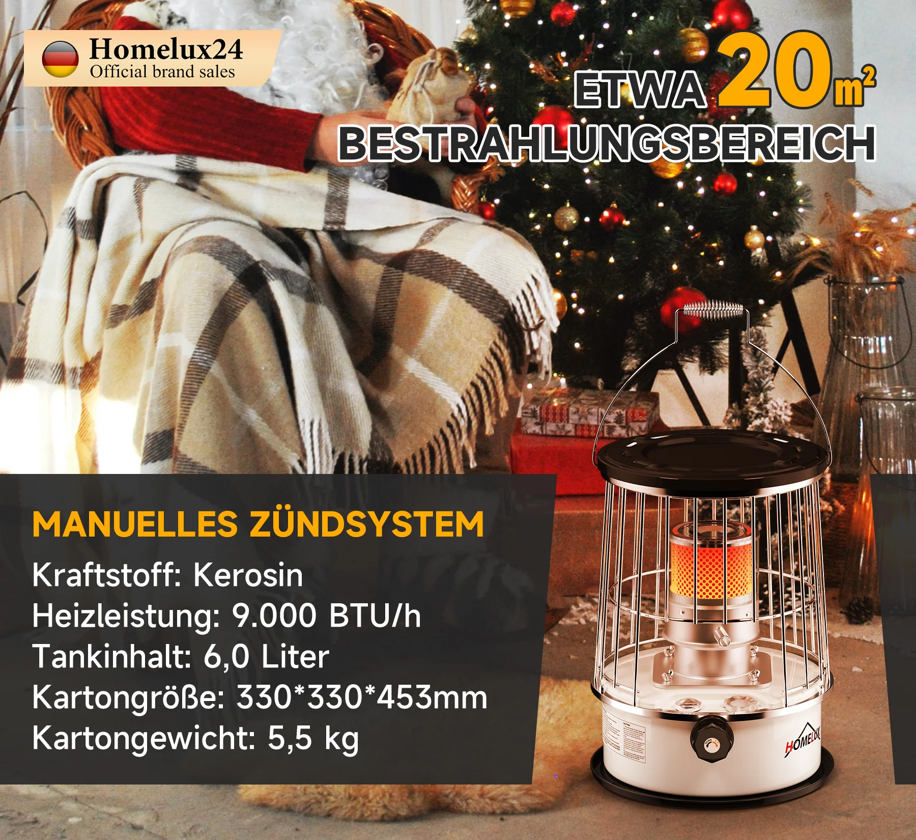 HOMELUX Petroleumofen – Mobile Heizung für drinnen und draußenDer HOMELUX Petroleumofen bietet eine leistungsstarke und effiziente Heizlösung für kalte Tage. Ideal für den Einsatz in Räumen bis zu 20 Quadratmetern oder für den Einsatz im Freien bei Camping, Notfällen oder in Gewächshäusern. Diese mobile Heizung benötigt keinen Strom und bietet schnelle Wärme mit minimalem Energieverbrauch.