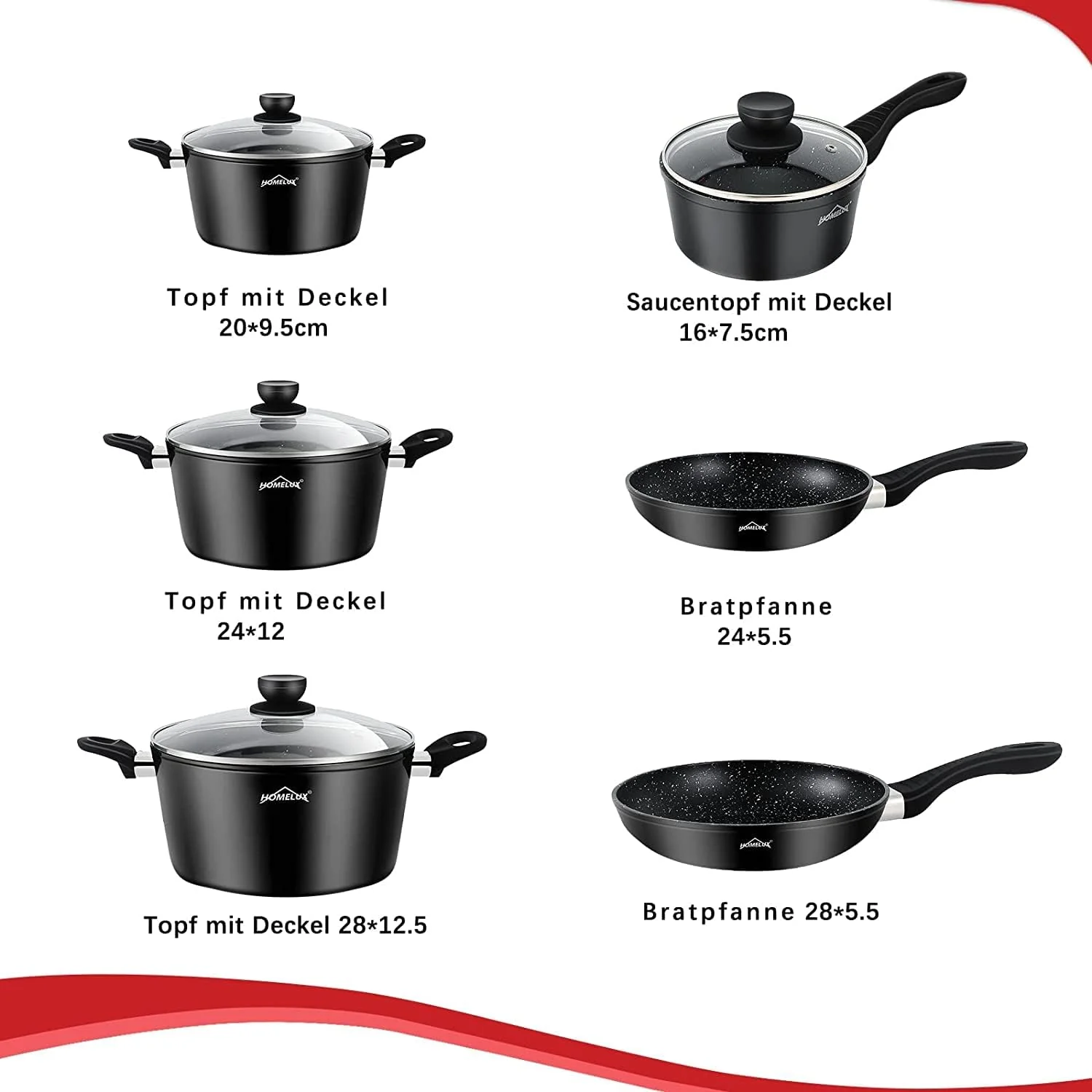 HOMELUX 10tlg Induktions-Töpfe Set Kochtopfset aus Aluminiumguss mit Antihaftbeschichtung, Töpfe inkl. Deckel, PFOA frei Schwarz
